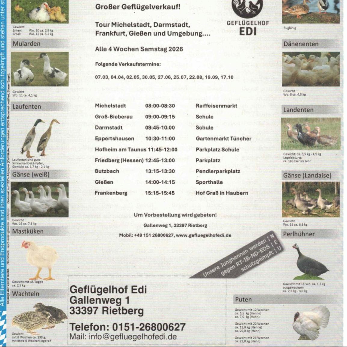 Weitere Verkaufstermine 2026 am: 04.04, 02.05, 30.05, 27.06, 25.07, 22.08, 19.09, 17.10
